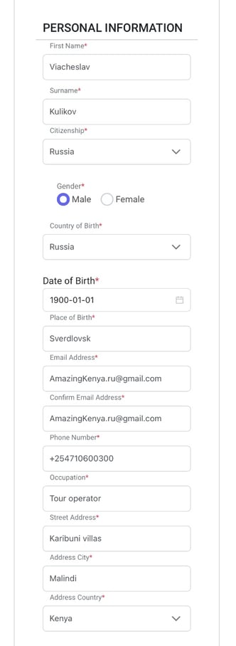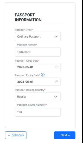 После того, как загрузите разворот паспорта и портретное фото, сайт выдаст всю анкету для проверки , посмотрите еще раз все данные: имя, фамилию, номер паспорта, дату въезда.