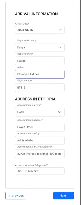 Departure Country: стррана откуда будете лететь в Эфиопию